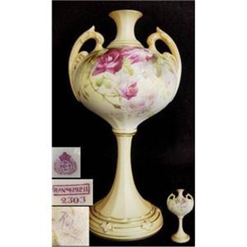 <tr><td>Title:Royal Worcester Twin Handled Stem Vase.</td></tr>