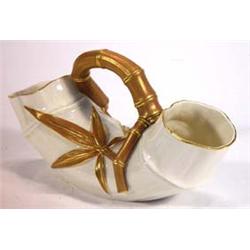 Royal Worcester bamboo vase with hand painted gold handle and leaves, marks to base, 27cm in leng…