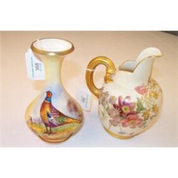 Royal Worcester bulbous shaped ewer with painted foliate decoration, gilt handle and borders, pri...