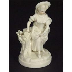 Royal Worcester spill vase modelled as a young girl clutching her skirt beside a tree stump, impressed mark to base, 16cm high
