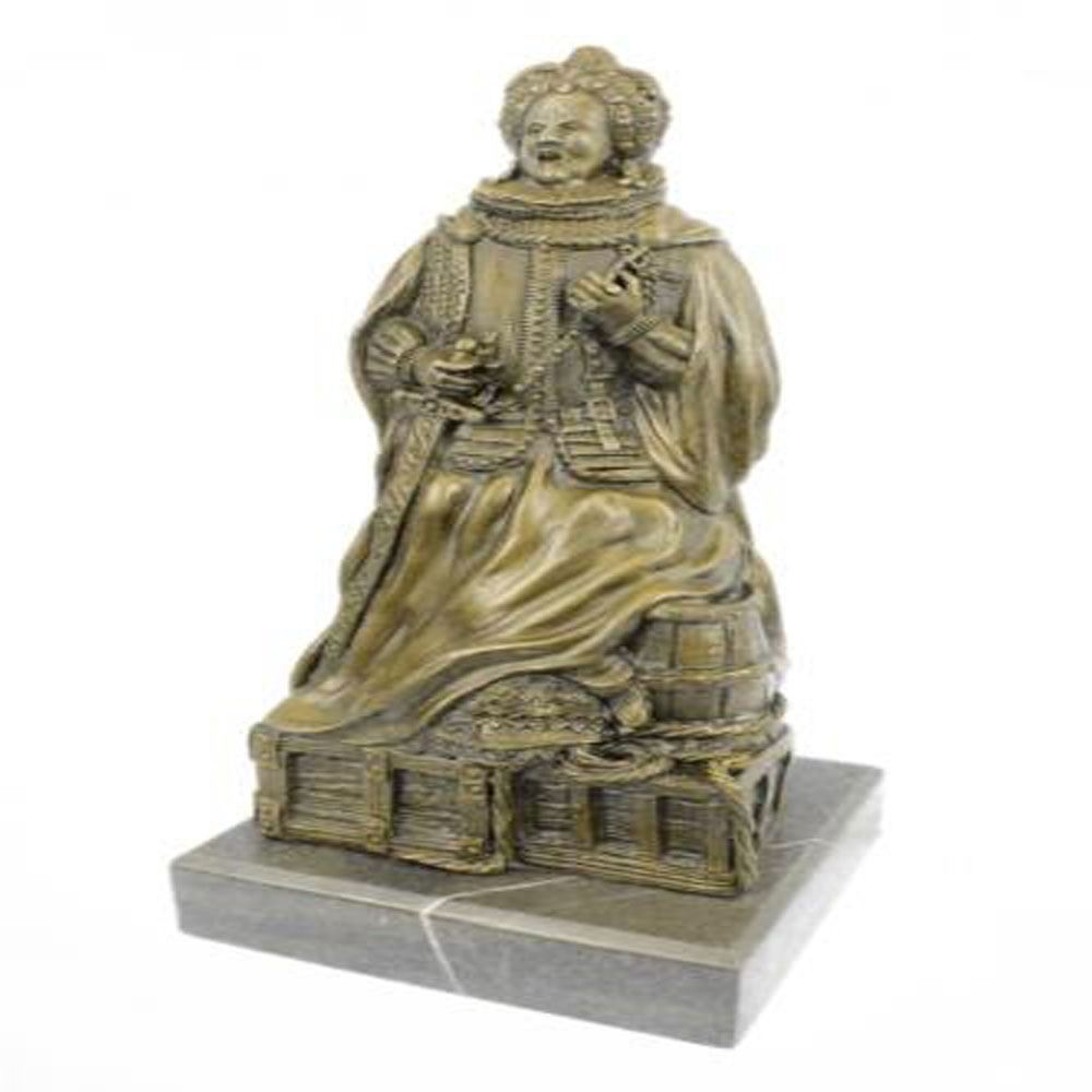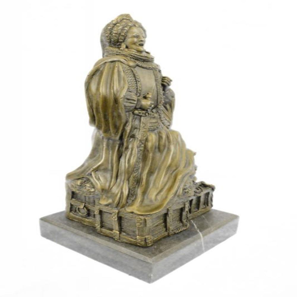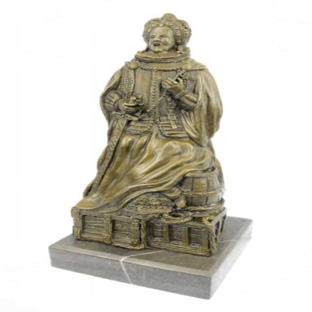 The daughter of Henry VIII and of Anne Boleyn who was herself a very famous woman, queen Elizabeth I is renowned for having remained unmarried for her entire life, in an era when this was inconceivable, especially since she was the Queen of England and was expected to provide an heir to the throne. Despite this aspect, her reign was considered one of the most successful in the history of England. While controversies arose around her as well many see her as an evil woman, especially for executing her cousin, Mary, the queen of Scots what is clear is that England thrived under her ruling. This dark brown patina Sculpture was cast using the Lost Wax Method and mounted on a marble base. Dimensions: Height 14 X Width 6 inches. Weight: 3 LBS.