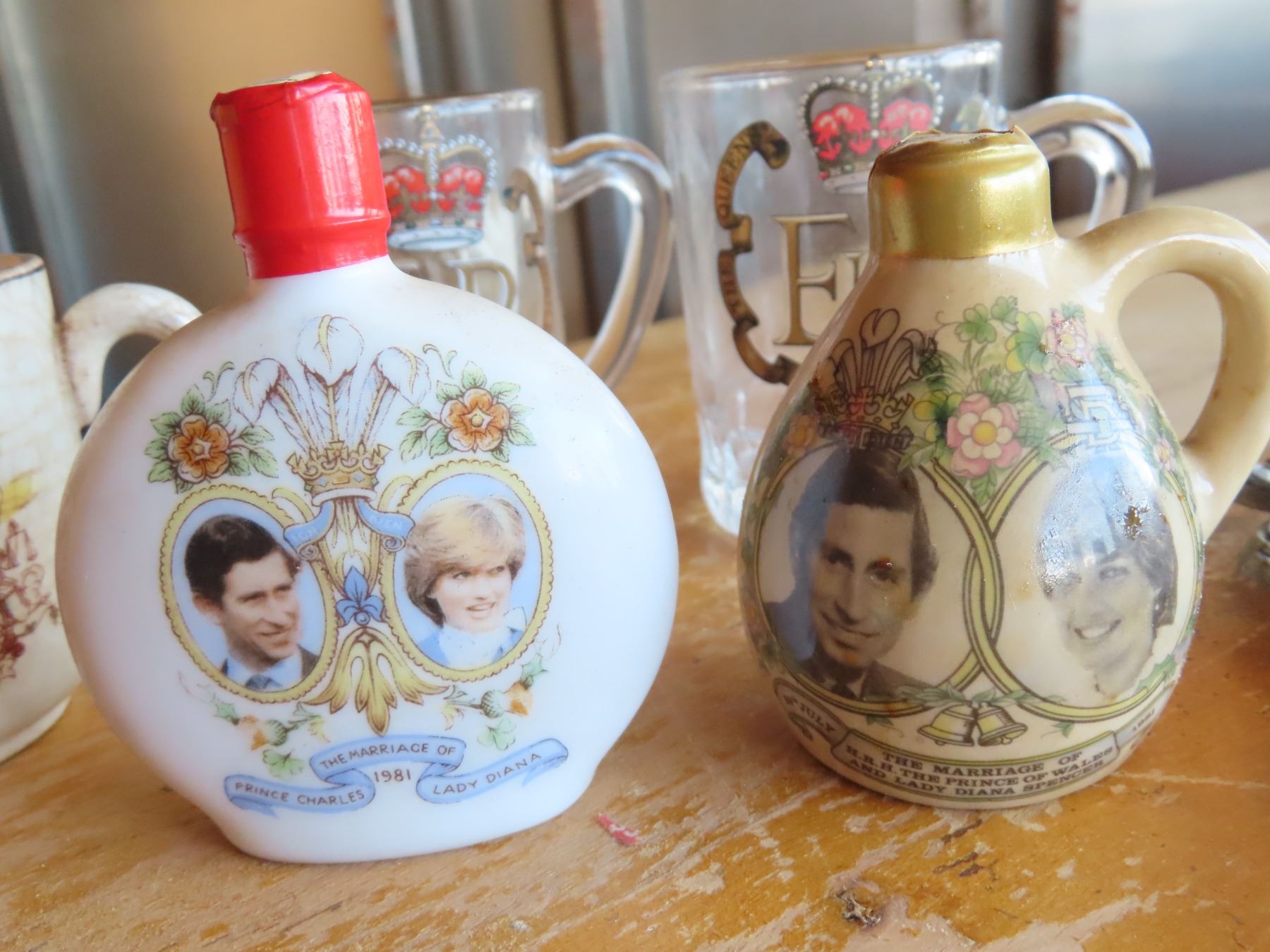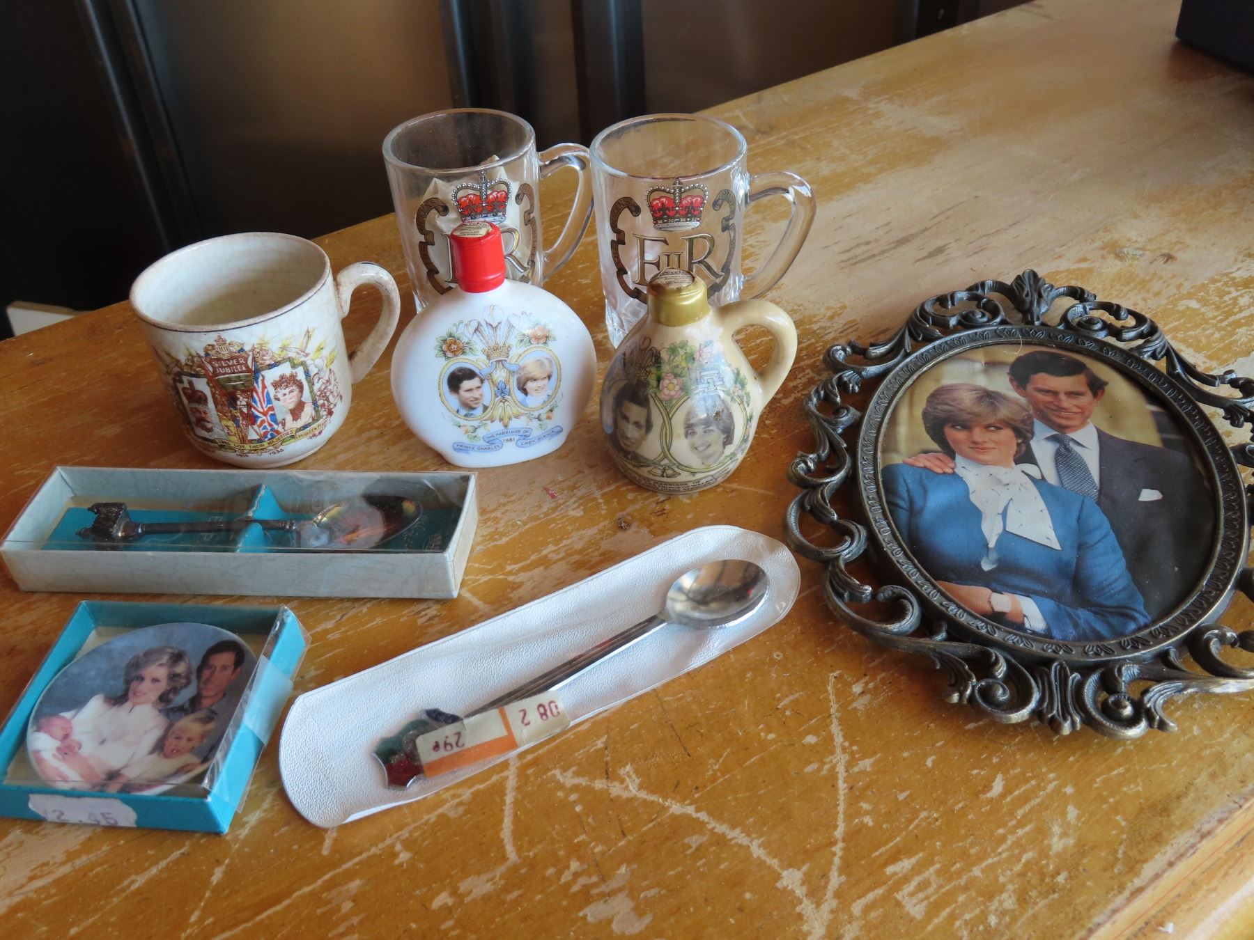 Royal family small stuff (2 full small whisky bottles, glasses, frames and spoons