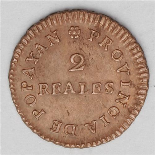 Royalist Provisional Coinage 2 Reales 1813 Popayan, KM- Royalist Provisional Coinage 2 Reales 1813 P