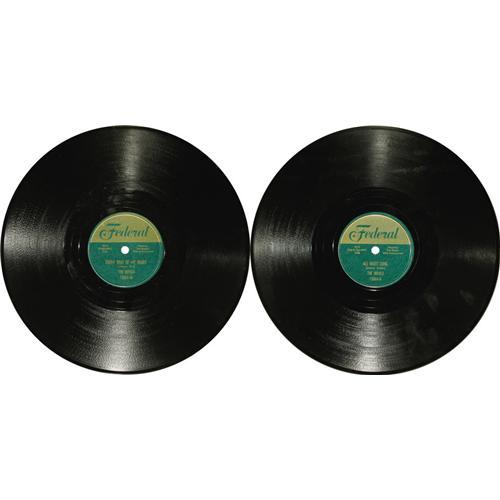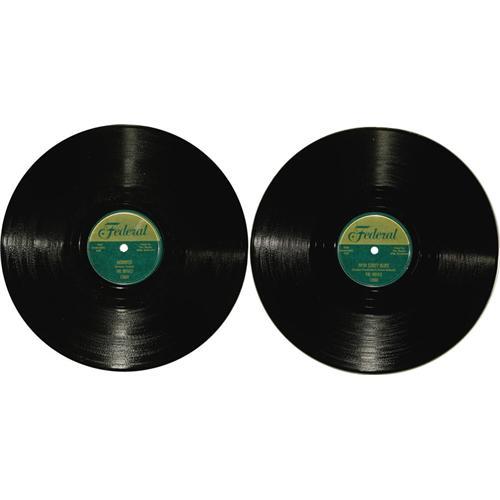 <B>Royals 78 Group of 2 (Federal, 1952).</B></I> The group that evolved into the Midnighters after Hank Ballard joined in 1953 released five singles in 1952, all much sought-after by collectors. Here are two of them in ridiculously high grades! Included are "Every Beat Of My Heart"/ "All Night Long" (Federal 12064, 1952) in MT 9 and "Moonrise"/ "Fifth Street Blues" (Federal 12088, 1952) in GM-MT 10. <I>From the GRT Collection</B></I>.<BR><BR><b>Shipping:</b> Recordings (<a target="_blank" href="http://www.heritageauctions.com/common/shipping.php">view shipping information</a>)