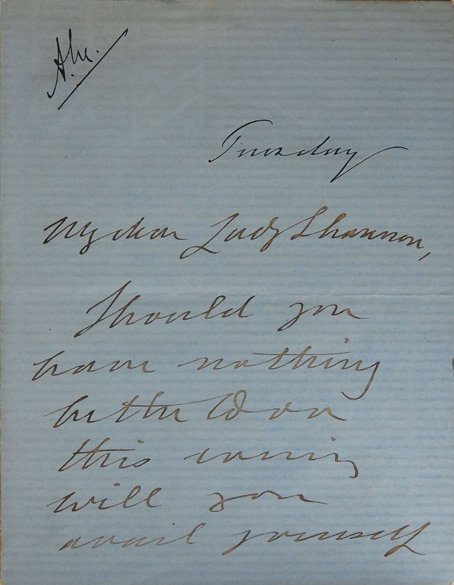Unique assemblage of material related to British Royalty, highlighted by a set of nine ALSs affixed to the front and back of four cardstock sheets, totaling twenty pages, with signers including: two letters from King Edward VII, signing both as “Albert Edward”; Albert, Prince Consort, the husband of Queen Victoria; Princess Mary Adelaide, Duchess of Teck; Princess Louise Margaret, Duchess of Connaught and Strathearn; Francis, Duke of Teck; Princess Alexandra, The Honourable Lady Ogilvy (2); and Adolphus Cambridge, 1st Marquess of Cambridge. Also included is a Buckingham Palace music program, dated June 25, 1890, accompanied by a card stating, “This programme was used by Her Majesty Queen Victoria,” as well as three additional music programs, dated between 1885–1892; a manuscript menu for “Her Majesty’s Dinner, Monday, 1st February 1897; and an unsigned color engraving of The Coronation of Her Majesty Victoria. In overall very good to fine condition.