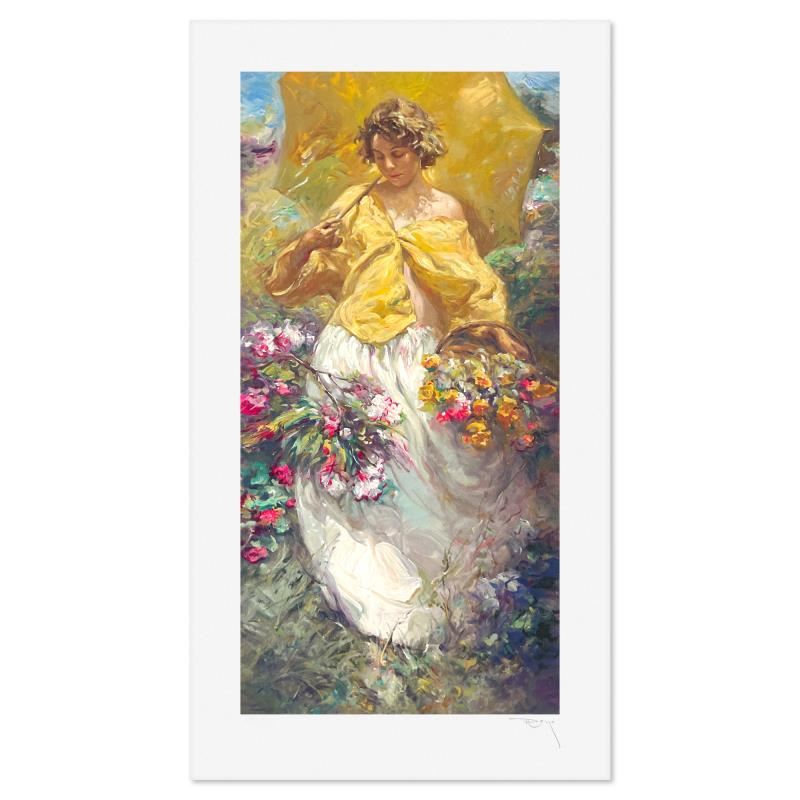 "Four Seasons (Suite)" is a 4-piece limited edition Printer's Proof suite on paper by Royo. This item consists of the titles, "Spring", "Summer", "Fall" and "Winter". Each piece is hand signed by the artist and has matching numbers. Includes Letter of Authenticity. Each piece measures approx. 28.5" x 16" (border), 26" x 12" (image).