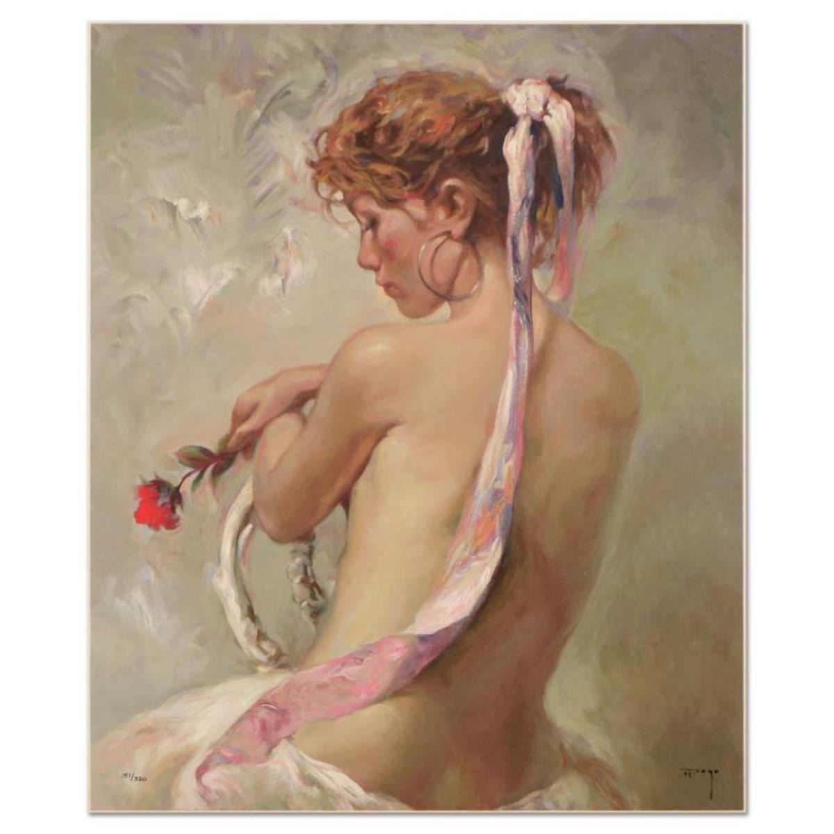 "Rosa Y Nacar" is a limited edition serigraph on panel, numbered and hand signed by Royo. Includes Certificate of Authenticity. Measures approx. 24" x 29" (image). Reference #: 227989