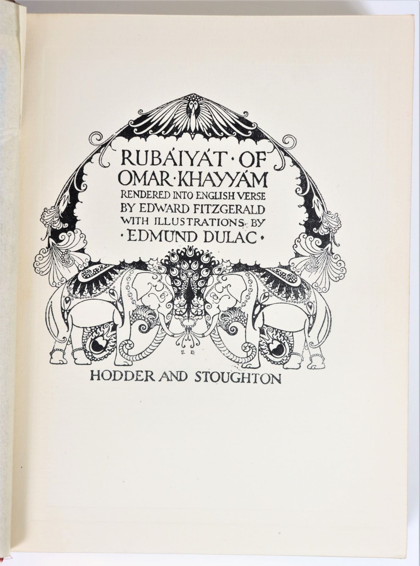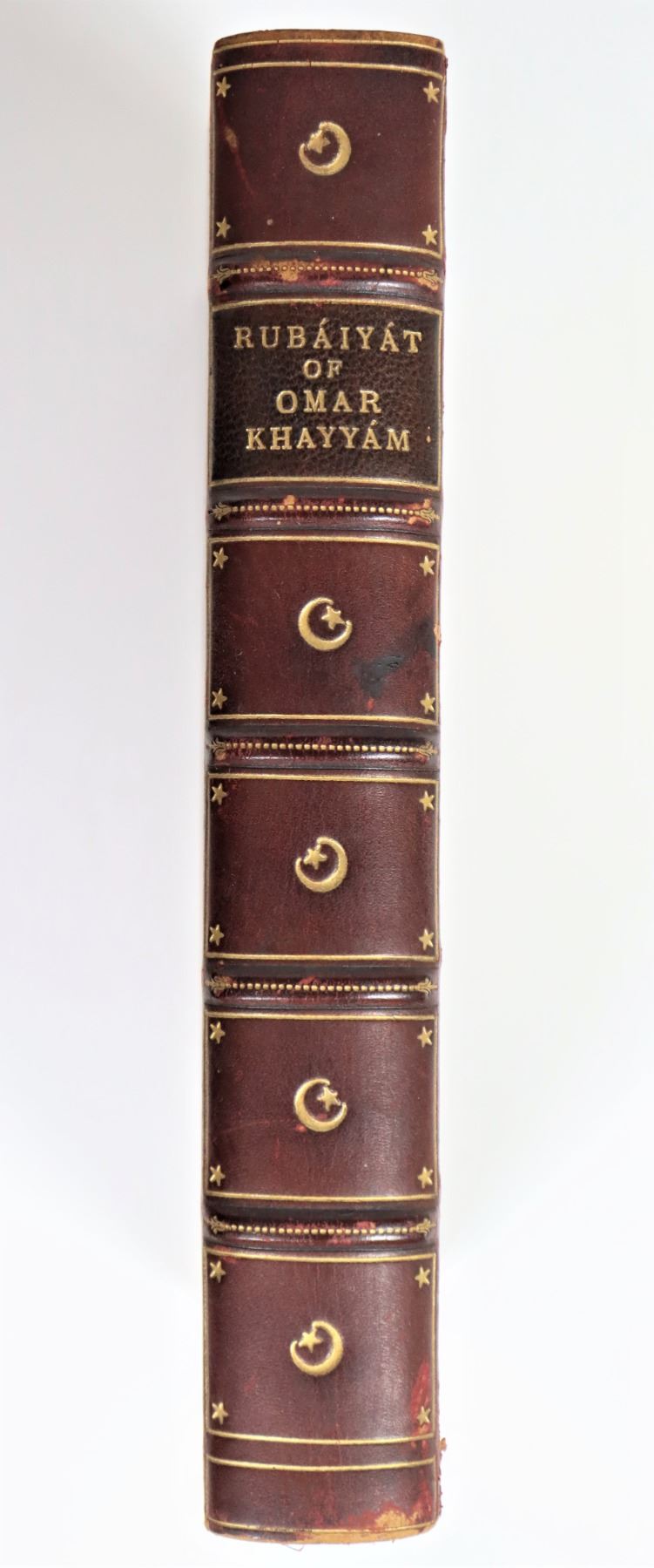Exquisite first edition thus of the Rubaiyat of Omar Khayyam, a book of poems translated from Persian to English by Edward Fitzgerald (1809-1883), an English poet and writer best known for his translation of this book. The poems were attributed to Omar Khayyam (1048-1131), a mathematician, astronomer, philosopher, and poet from ancient Persia.