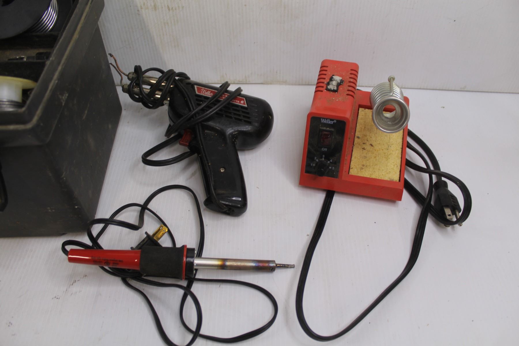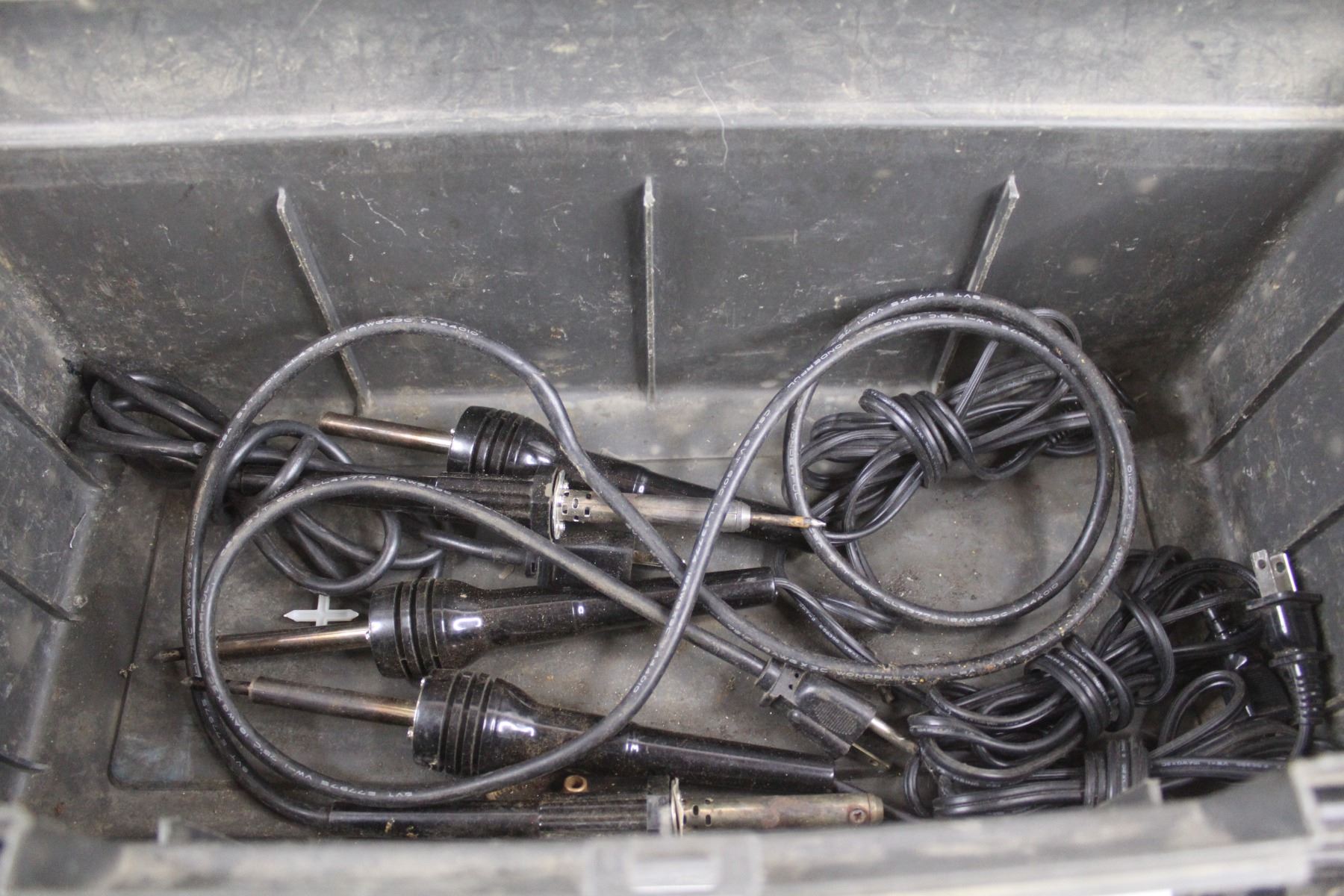 Rubbermaid Case 20"x9"x9", Weller Soldering Iron - Works, (6) Replacement Soldering Irons, Weller Soldering Iron Gun - Works, Soldering Tips, Misc.