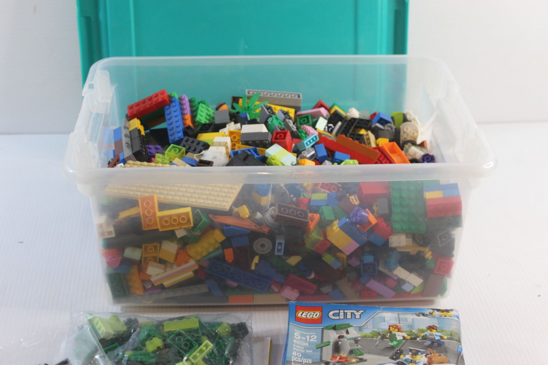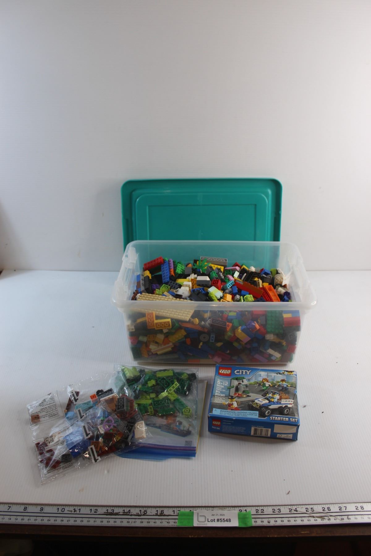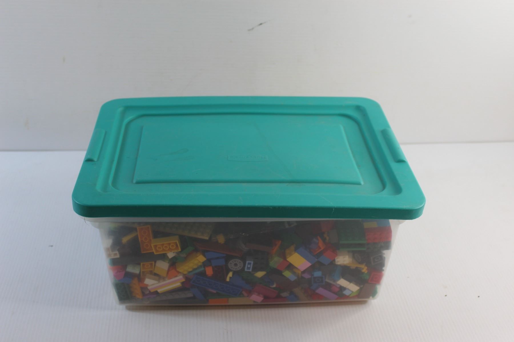 Rubbermaid Container with Lid and Assorted Lego Building Blocks