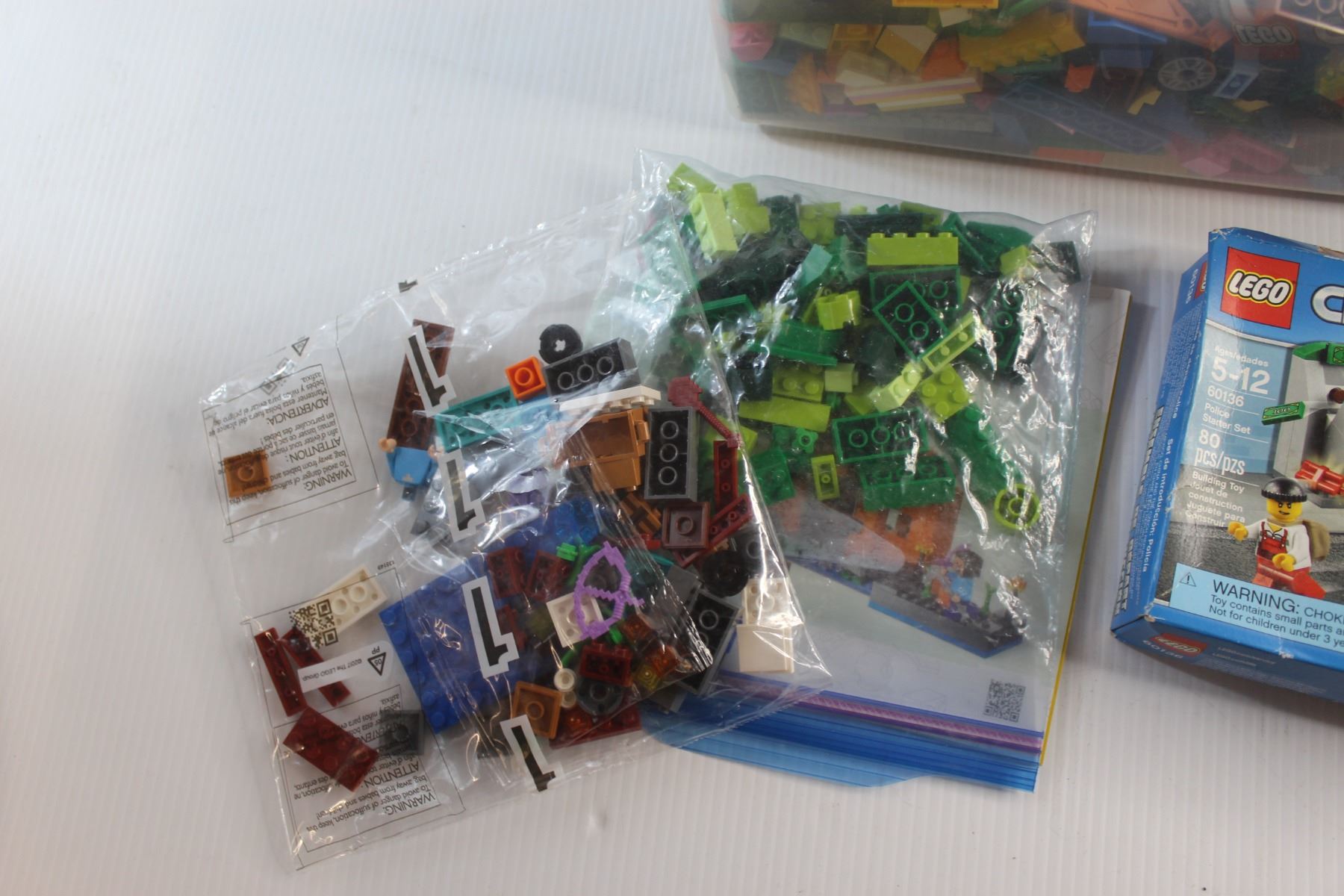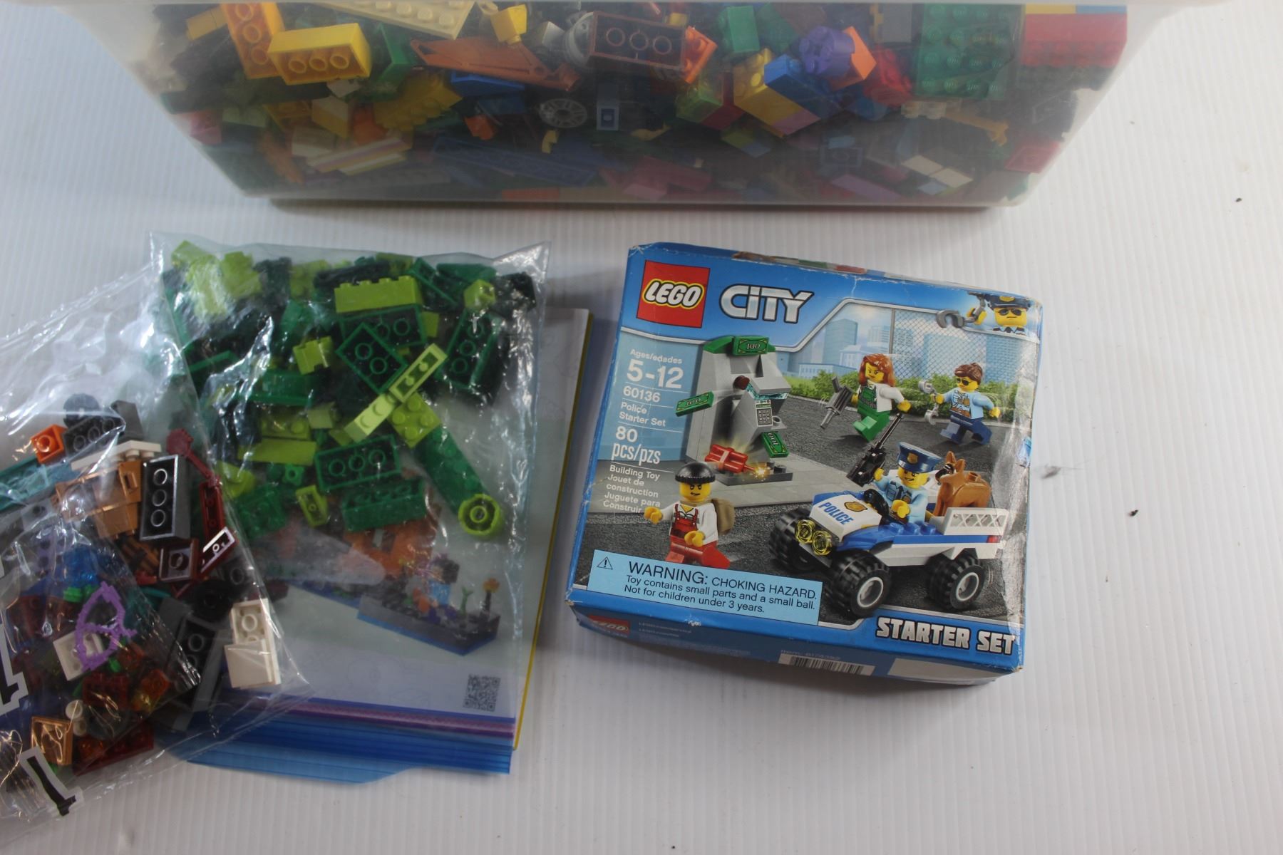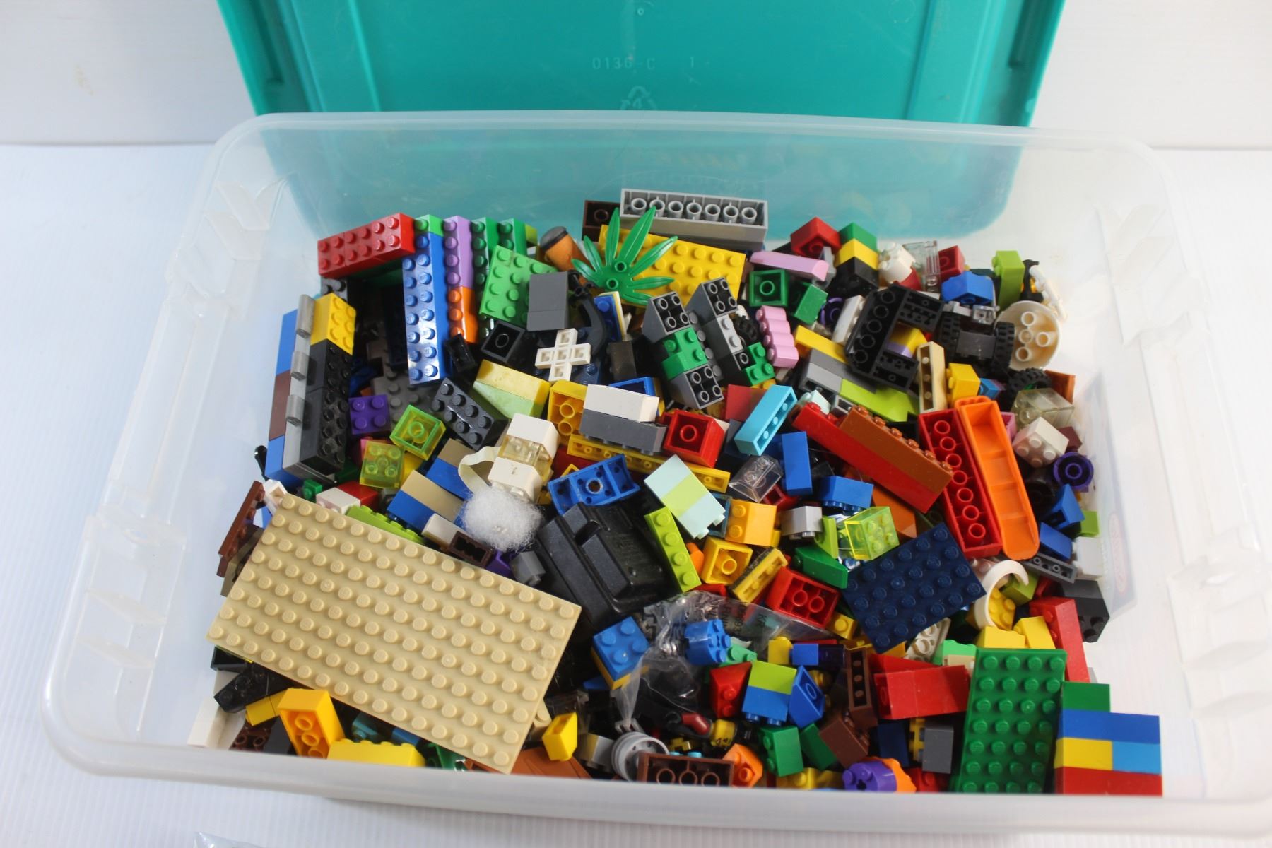 Rubbermaid Container with Lid and Assorted Lego Building Blocks