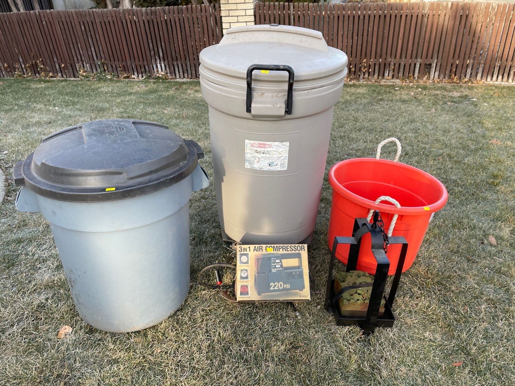 Rubbermaid Outdoor Bins With Lids, Plug In Air Compressor & More