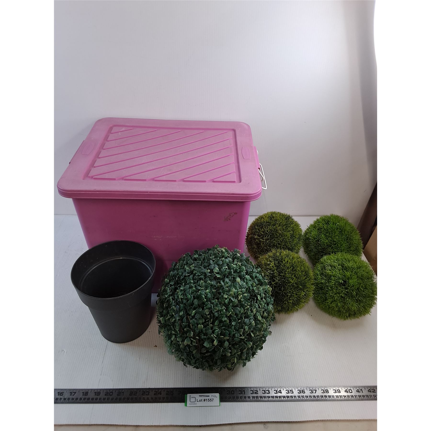 Rubbermaid Storage Bin w/Lid 16x13x14", Artificial 'Orb Plant' Decor - Pickup Only