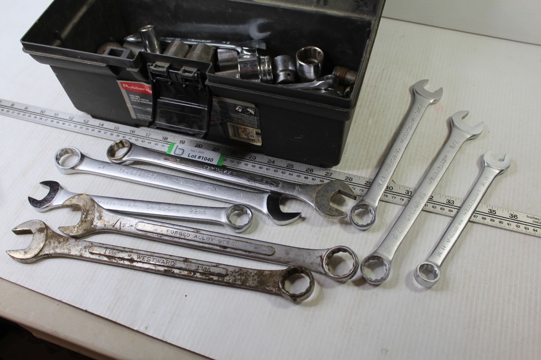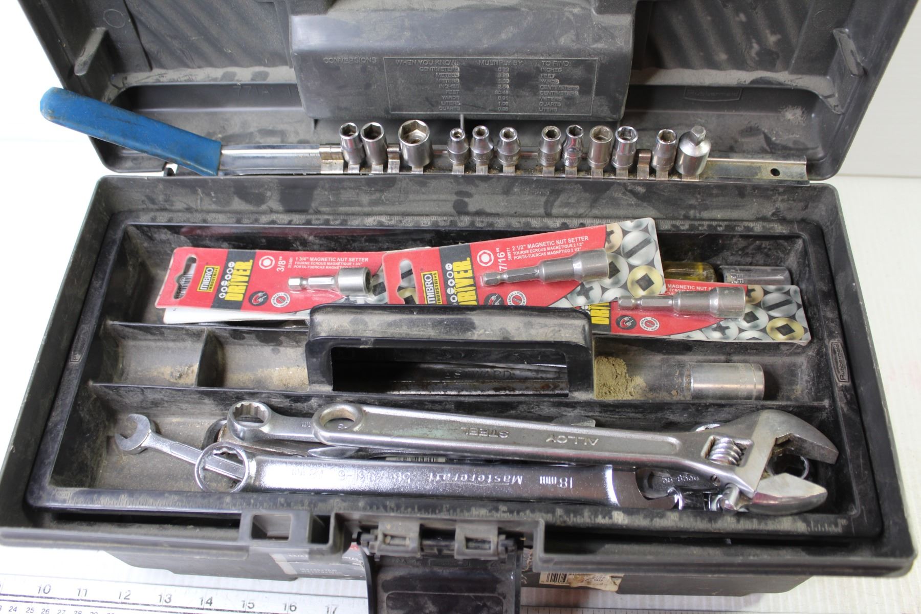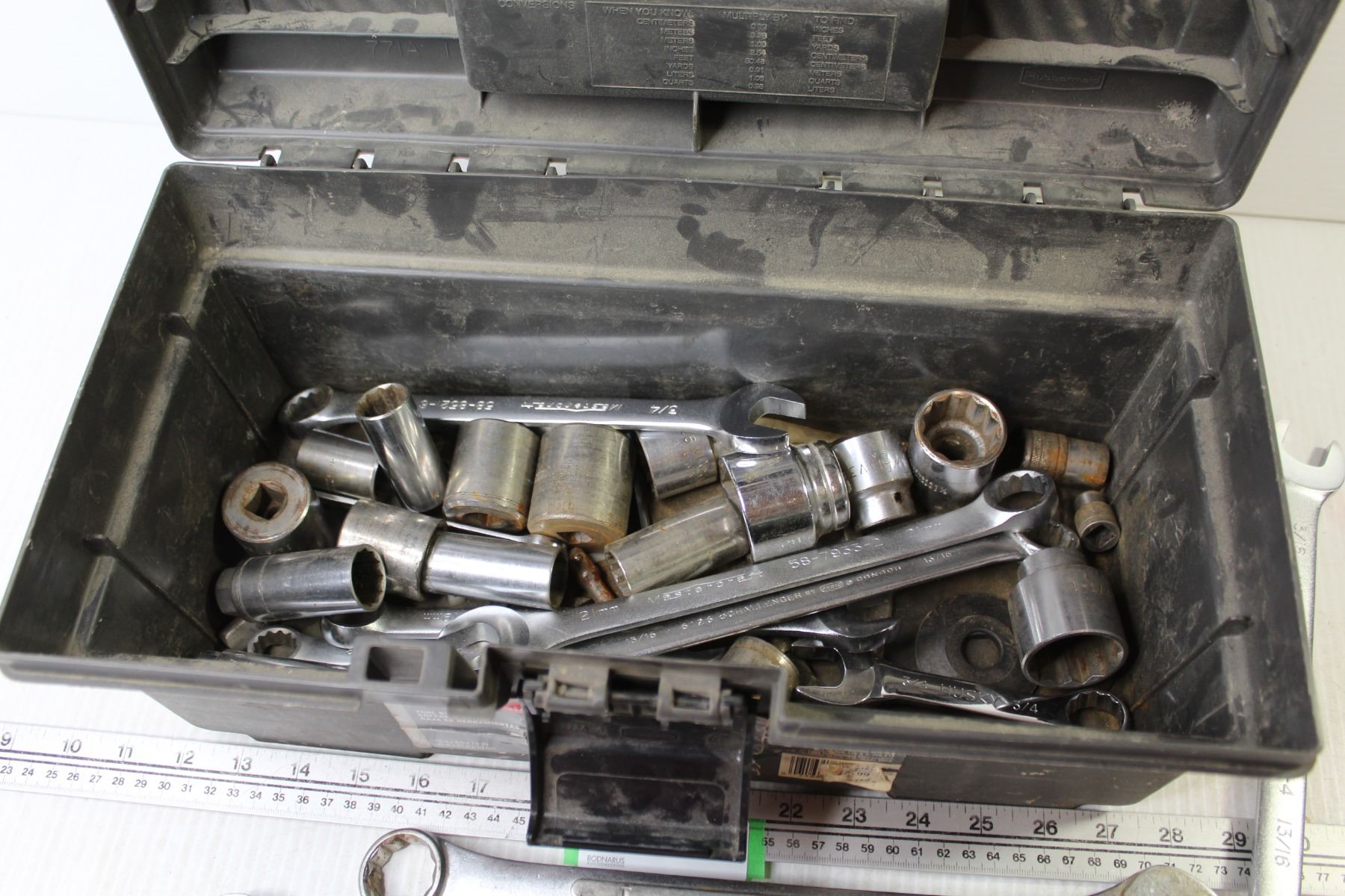 Rubbermaid Tool Box w/Contents - Wrenches - Sockets - Misc. Tools