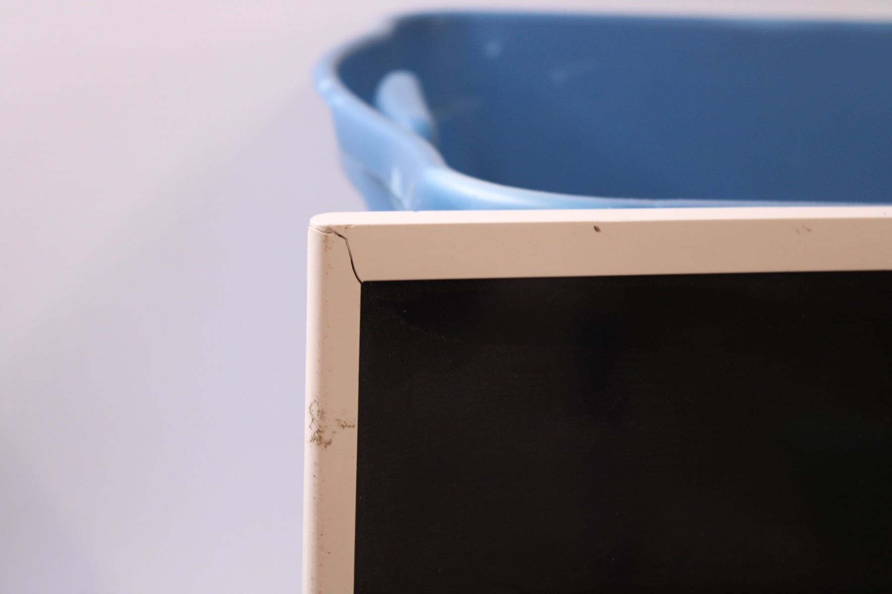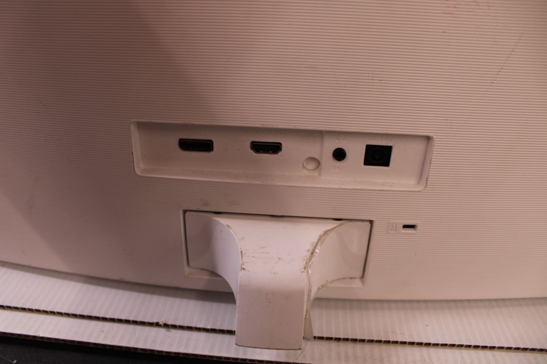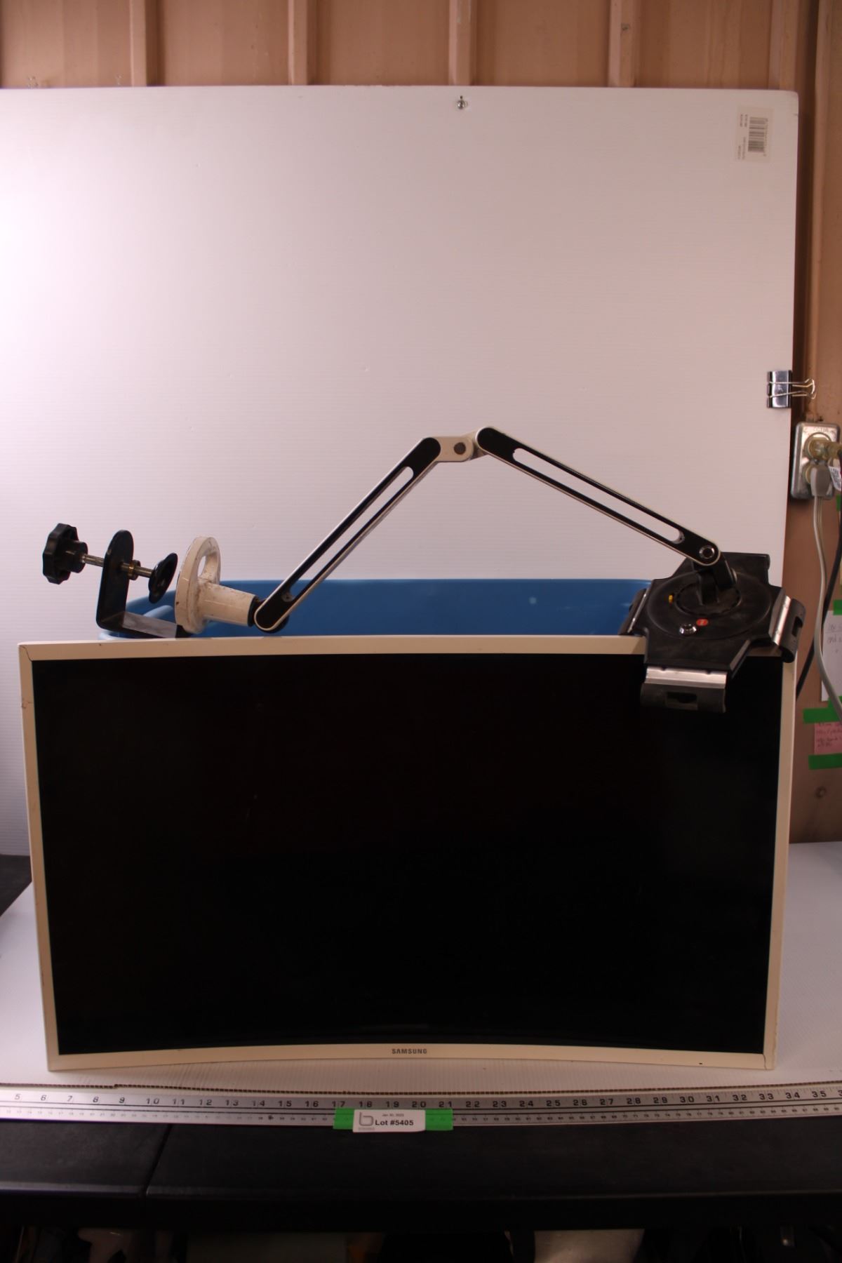 * Rubbermaid Tote, Samsung Curved Monitor - (Damaged) & Mounting Arm