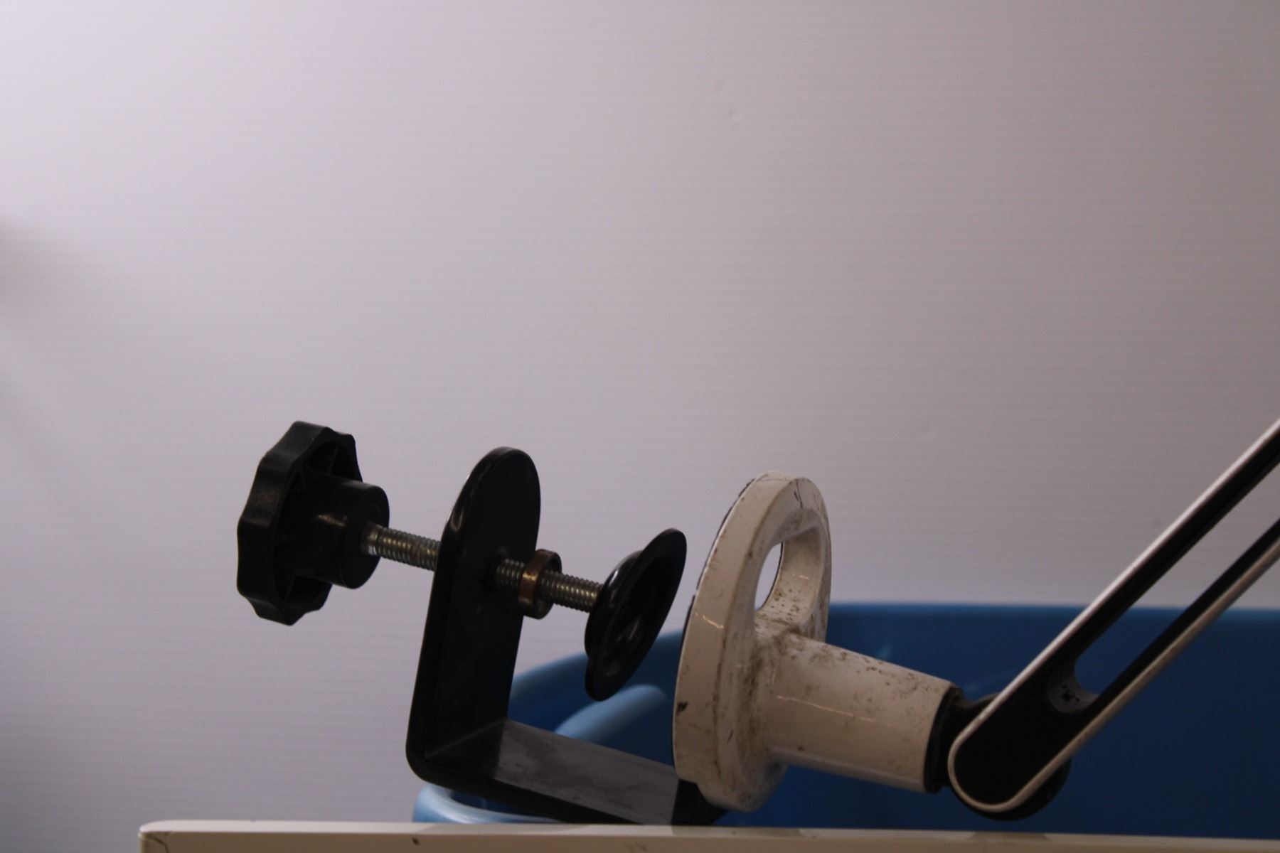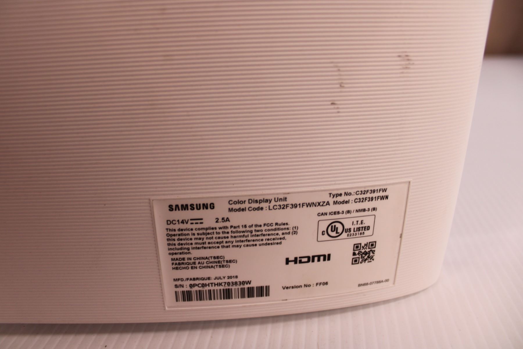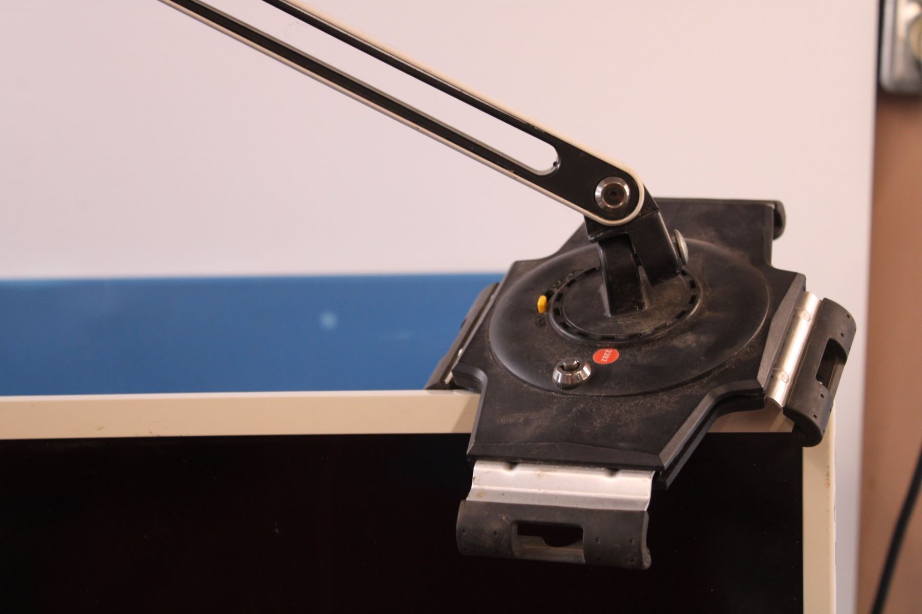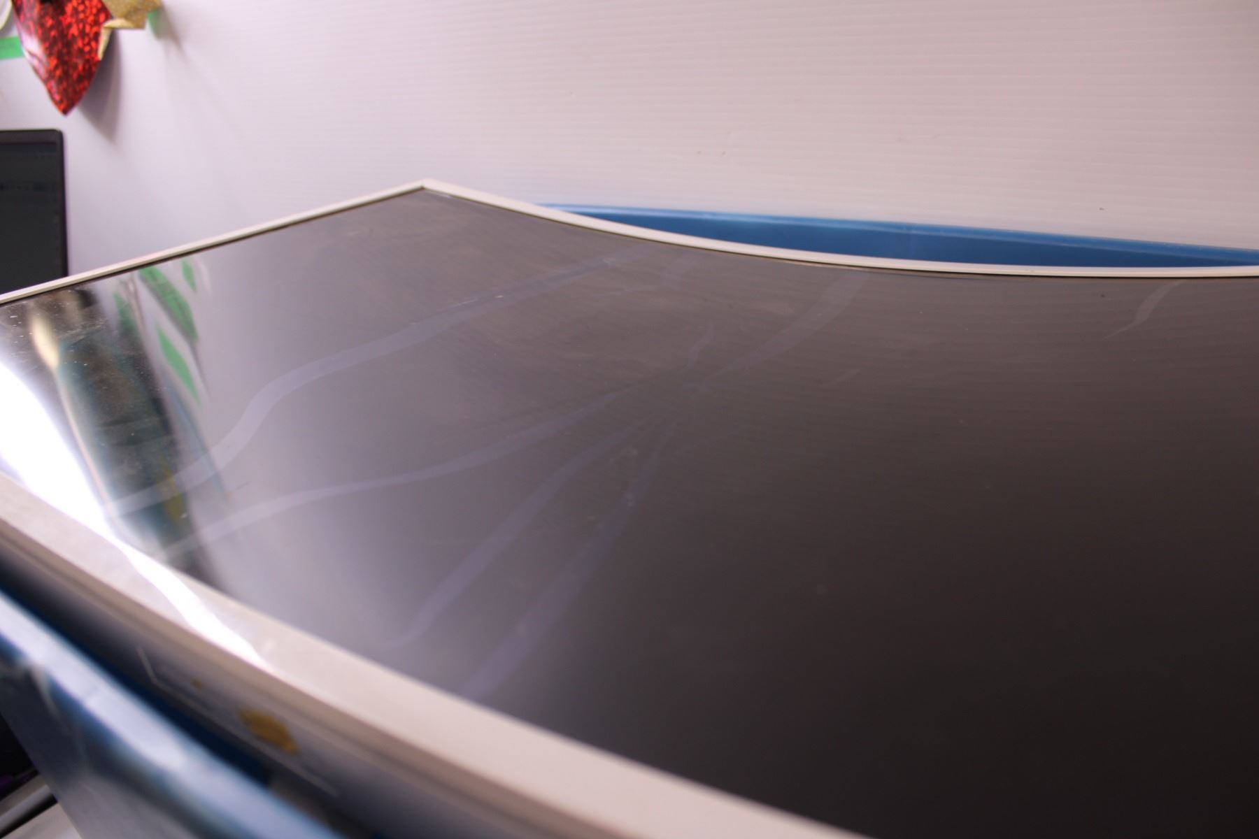 * Rubbermaid Tote, Samsung Curved Monitor - (Damaged) & Mounting Arm
