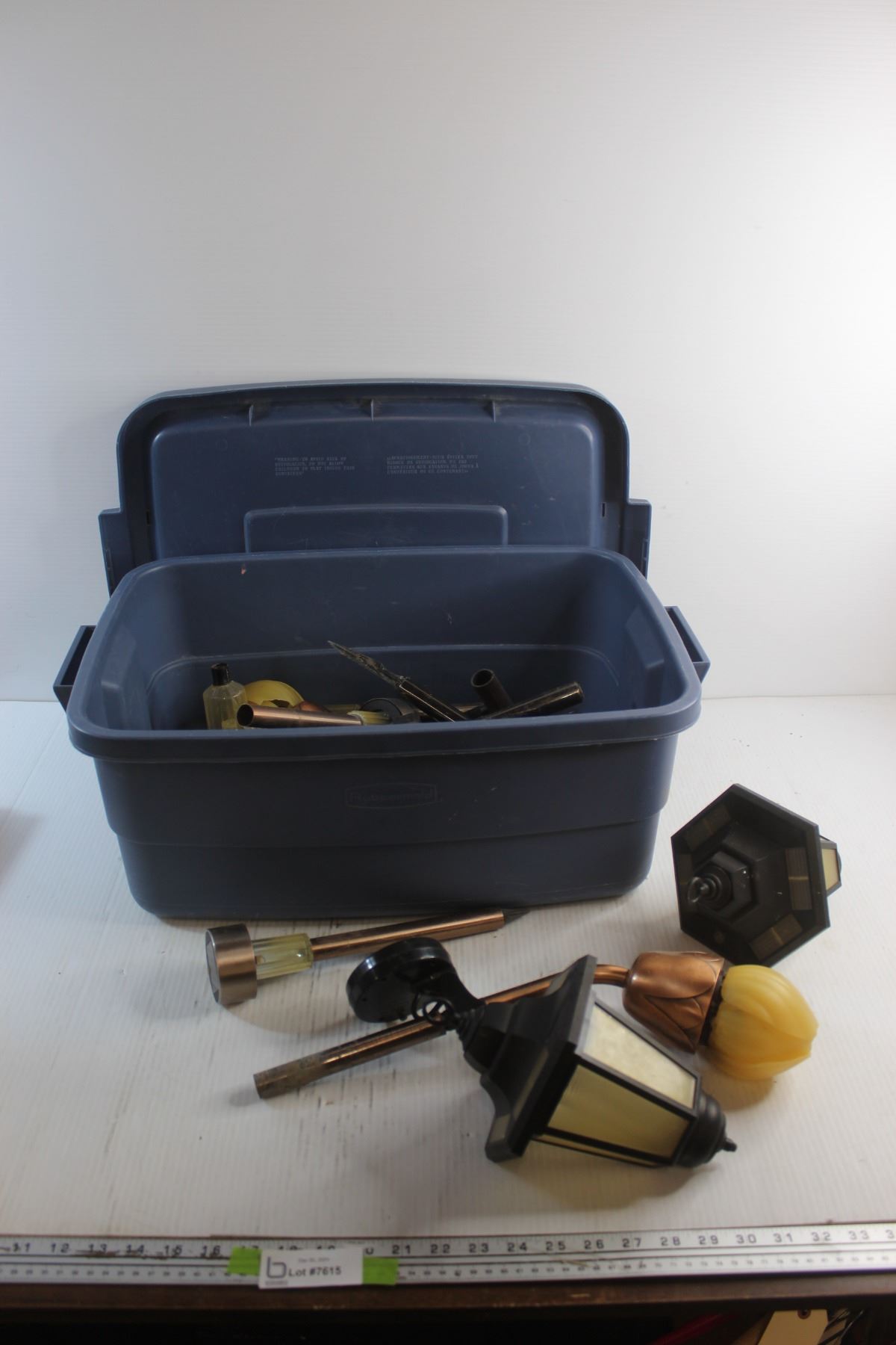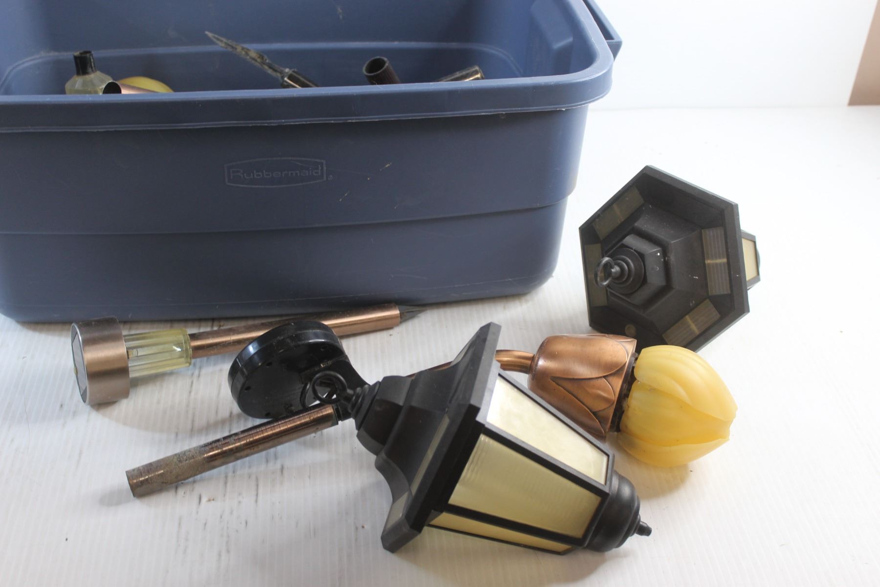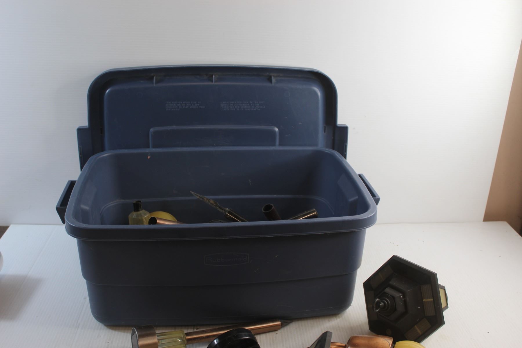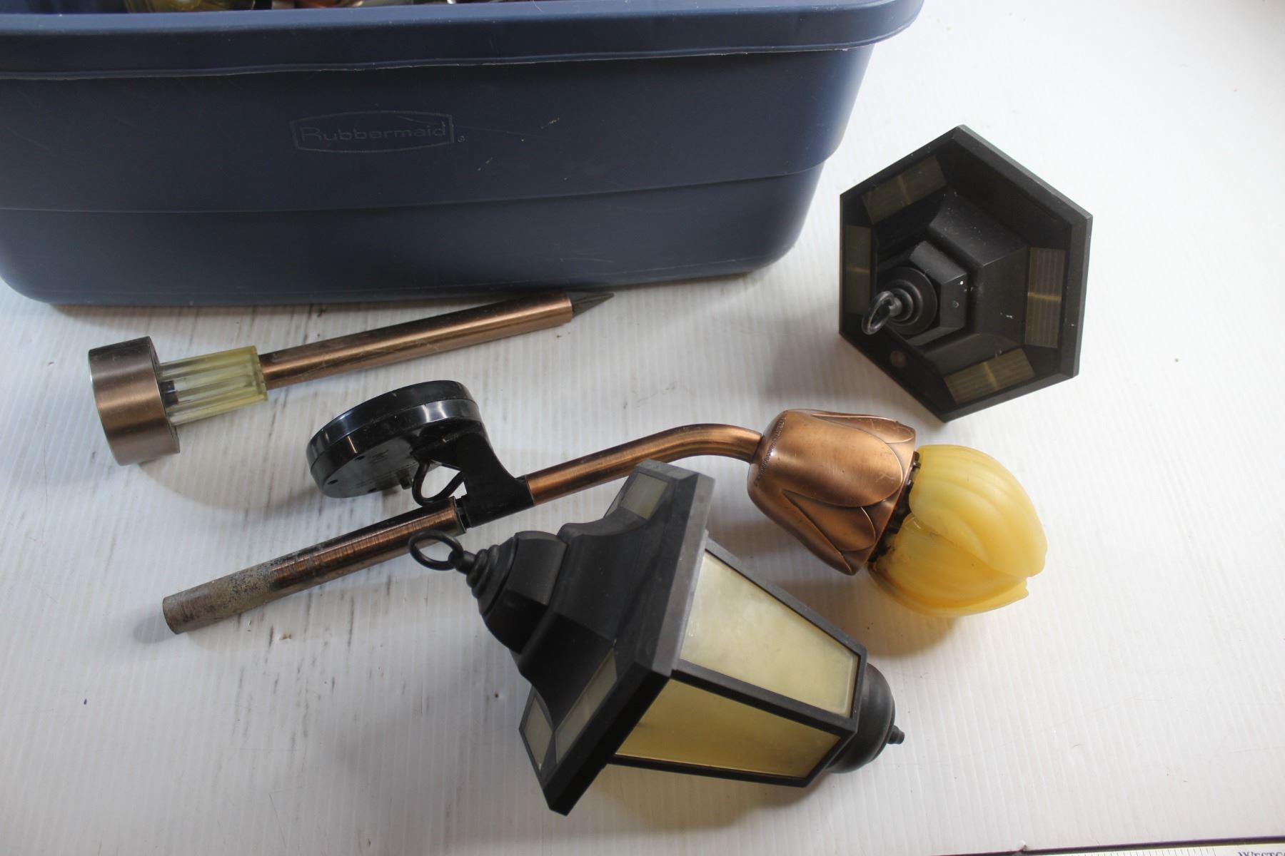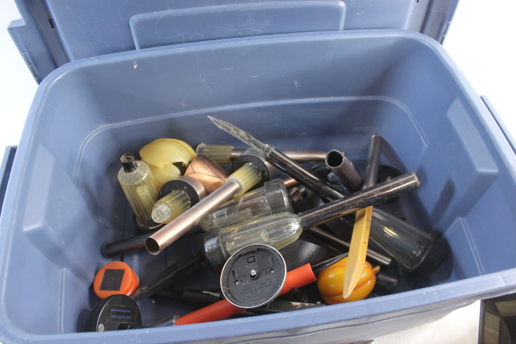 Rubbermaid Tote and Solar Pathway Lights - As Is