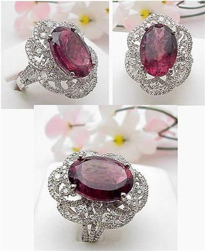Rubelite and diamond ring in 18kt white gold. 13.3gr finger size of 6 3/4