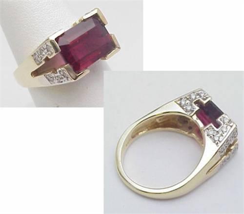 Rubelite ring 4.20Ct with .35Ctw diamonds 14kt yellow gold 6.9gr size 6