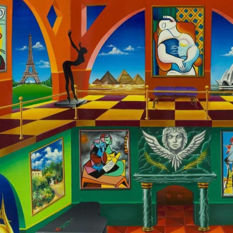 "Rubik Cube" is a limited edition Giclee on Canvas by Alexander Astahov. The piece is numbered, hand signed by the artist, and come with a letter of authenticity. Measures approximately 30" x 40".