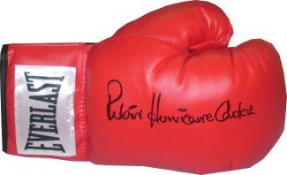 Rubin "Hurricane" Carter was an American middleweight boxer who was wrongly convicted of murder and later freed via a petition of habeas corpus after spending almost 20 years in prison. After his release from prison in September 1961, Carter became a professional boxer. His aggressive style and punching power (resulting in many early-round knockouts) drew attention, establishing him as a crowd favorite and earning him the nickname "Hurricane." The Ring first listed him as one of its "Top 10" middleweight contenders in July 1963. Carter's career record in boxing was 27 wins, 12 losses, and one draw in 40 fights, with 19 total knockouts. He received an honorary championship title belt from the World Boxing Council in 1993 and was later inducted into the New Jersey Boxing Hall of Fame. Rubin "Hurricane" Carter has hand signed this Everlast Boxing Glove. Certificate of Authenticity from Athlon Sports. Rubin died on April 20, 2014.