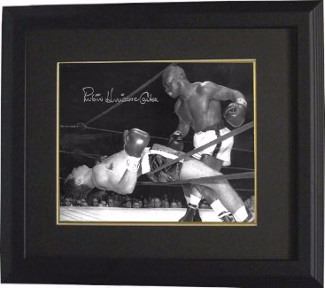 Rubin "Hurricane" Carter was an American middleweight boxer who was wrongly convicted of murder and later freed via a petition of habeas corpus after spending almost 20 years in prison. After his release from prison in September 1961, Carter became a professional boxer. His aggressive style and punching power (resulting in many early-round knockouts) drew attention, establishing him as a crowd favorite and earning him the nickname "Hurricane." The Ring first listed him as one of its "Top 10" middleweight contenders in July 1963. Carter's career record in boxing was 27 wins, 12 losses, and one draw in 40 fights, with 19 total knockouts. He received an honorary championship title belt from the World Boxing Council in 1993 and was later inducted into the New Jersey Boxing Hall of Fame. Rubin "Hurricane" Carter has hand signed this Vintage B&W 16x20 Photo. Certificate of Authenticity from Athlon Sports. Rubin died on April 20, 2014. Custom Black Mat and Premium Black Color Framed as shown.