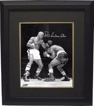 Rubin "Hurricane" Carter was an American middleweight boxer who was wrongly convicted of murder and later freed via a petition of habeas corpus after spending almost 20 years in prison. After his release from prison in September 1961, Carter became a professional boxer. His aggressive style and punching power (resulting in many early-round knockouts) drew attention, establishing him as a crowd favorite and earning him the nickname "Hurricane." The Ring first listed him as one of its "Top 10" middleweight contenders in July 1963. Carter's career record in boxing was 27 wins, 12 losses, and one draw in 40 fights, with 19 total knockouts. He received an honorary championship title belt from the World Boxing Council in 1993 and was later inducted into the New Jersey Boxing Hall of Fame. Rubin "Hurricane" Carter has hand signed this Vintage B&W 16x20 Photo. Certificate of Authenticity from Athlon Sports. Rubin died on April 20, 2014. Custom Black Mat and Premium Black Color Framed as shown