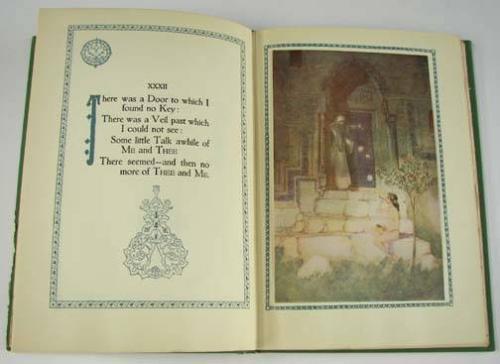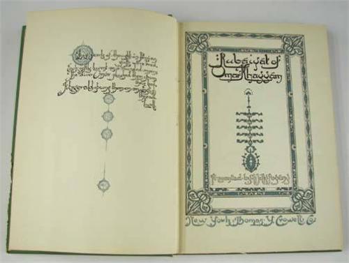 Rubiyat of Omar Khayyam, presented by Willy Pogany, Fitgerald's translation, illustrations and decorations by Willy Pogany, published by Thomas Y. Crowell, New York, from the Estate of Charles Ragland Bunnell, Condition: Fair, front cover tattered and stained