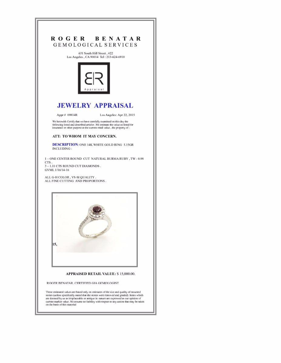 Ruby 0.98CT / Diamond 1.11 Ct / 14K White Gold Ring 5.15 Gram