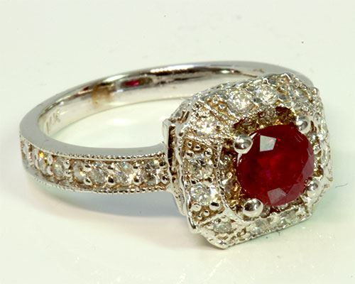 Ruby 1.00CT / Diamond 0.71CT / 14K White Gold Ring 4.49 Gram