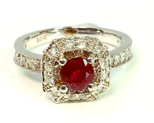Ruby 1.00CT / Diamond 0.71CT / 14K White Gold Ring 4.49 Gram