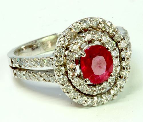 Ruby 1.08Ct / Diamond 0.84Ct / 14K White Gold Ring 4.91 Gram