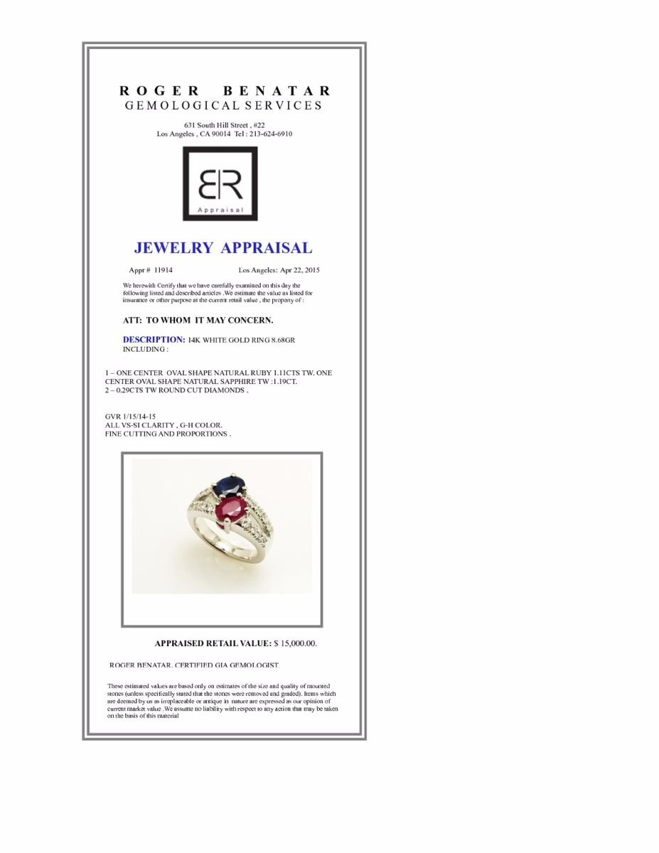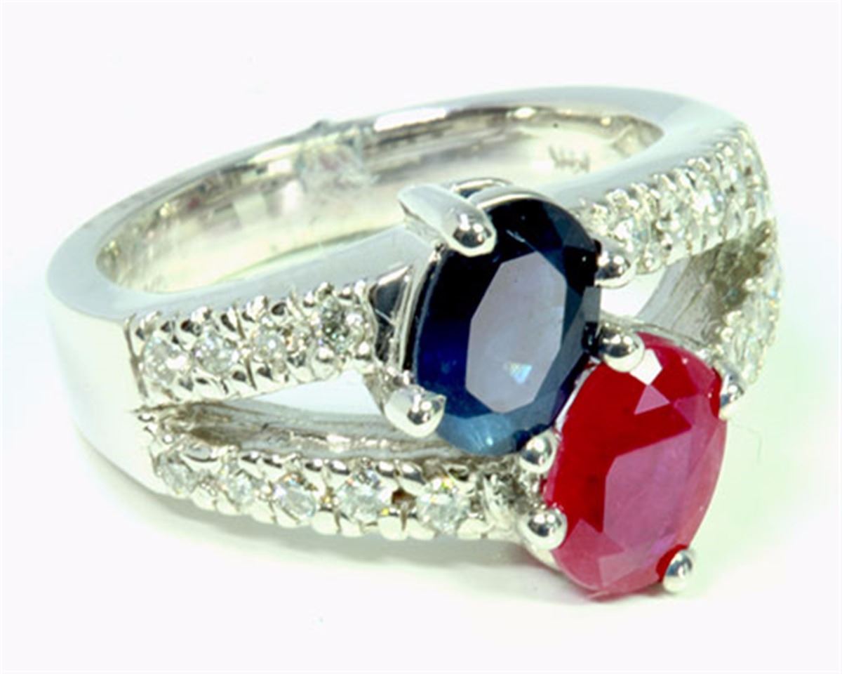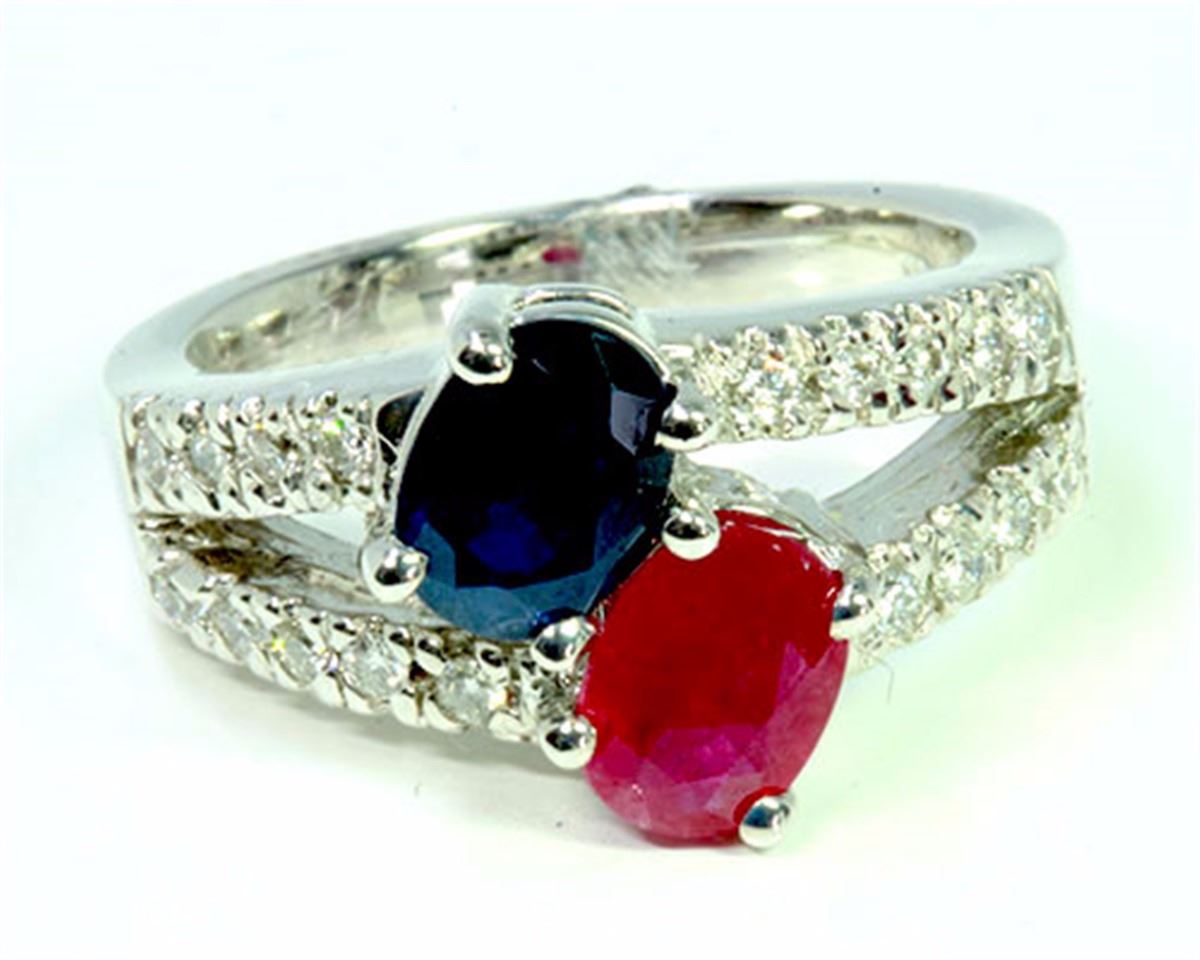 Ruby 1.11CT / Blue Sapphire 1.19CT / Diamond 0.29CT / 14K White Gold Ring 8.68 Gram