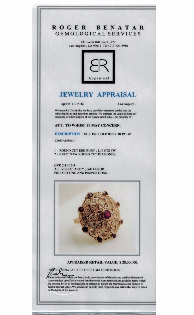 Ruby 1.19 ct & Diamond 0.48 ct Ring 10.19gr 14K Rose Gold