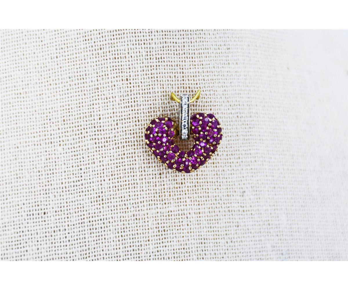 14kt Yellow/White Gold 3.60 approx grams including gems, 1.50cttw Ruby Deep Red Color Round, .06cttw Round Diamond (on Bail) G-H color VS-SI clarity, includes Jewelry Appraisal, Appraised Retail Value $2475.00