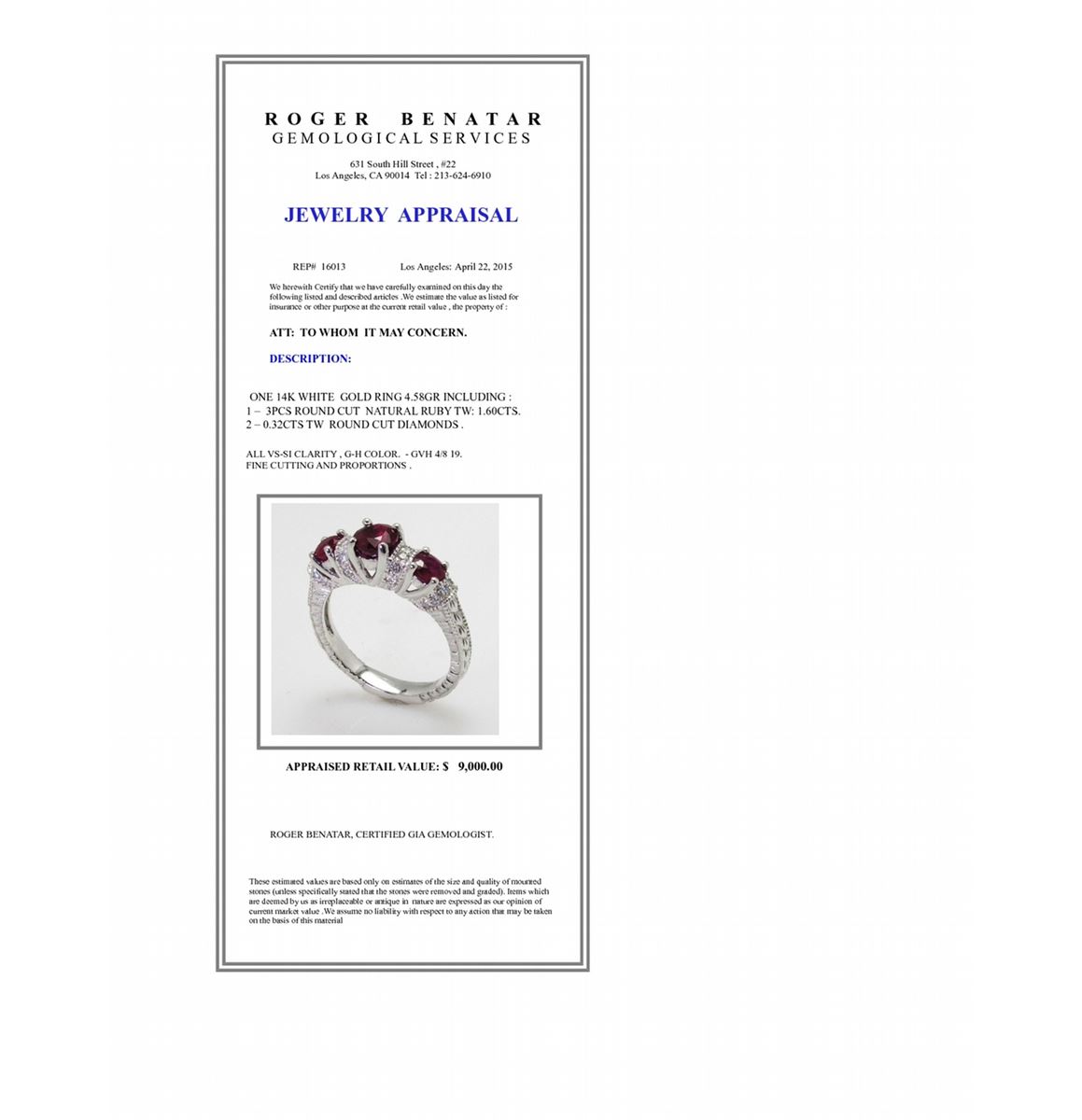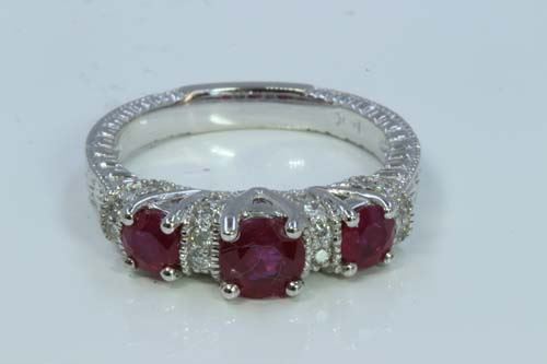 Ruby 1.60ct / Diamond 0.32ct / 14K White Gold Ring 4.58gram