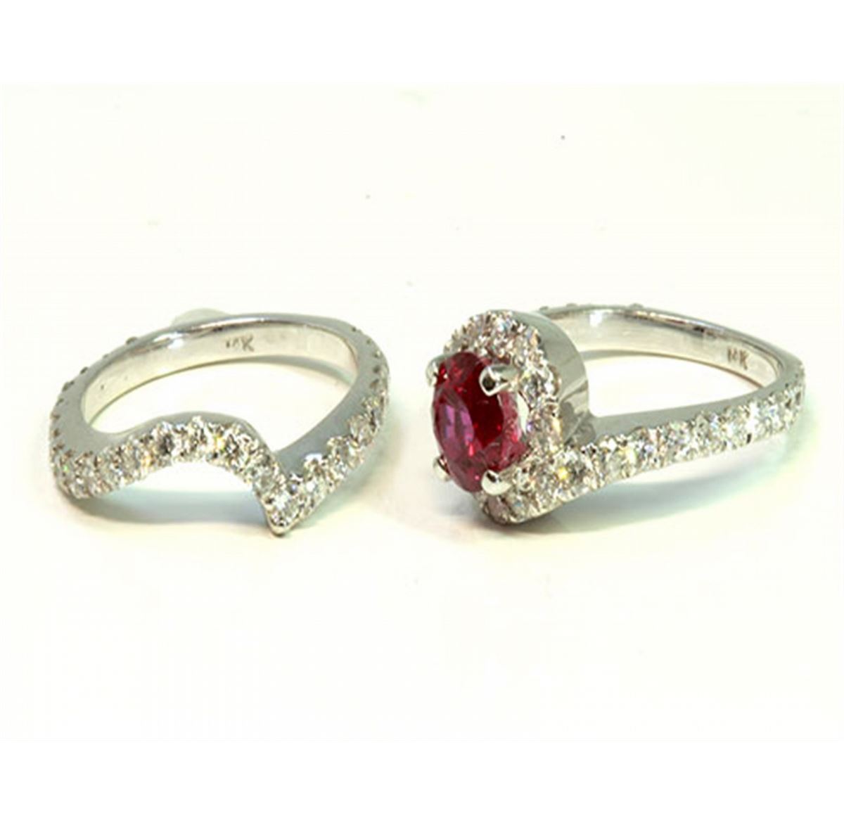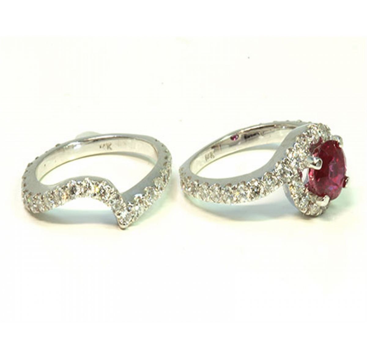 Ruby 1.68Ct / Diamond 1.80Ct / 14K White Gold 2pcs Rings 6.44 Gram