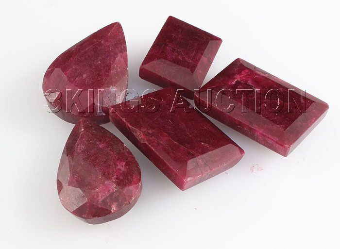 Ruby 105.42 ctw Loose Gemstone Mix Sizes & Shapes **|**|** Natural Ruby Loose Gemstone 16 to 24 MM in size Emerald & Pear Shape lot of 5 ; MSRP: $300