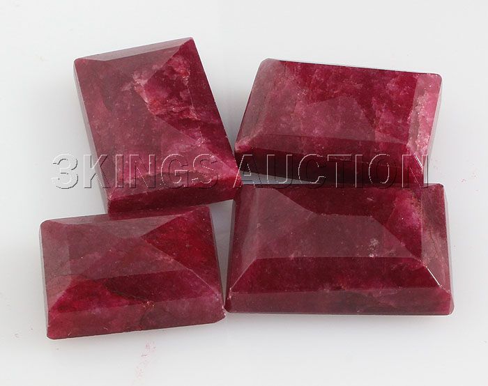 Ruby 107.45 ctw Loose Gemstone Mix Sizes Emerald Cut **|**|** Natural Ruby Loose Gemstone 19 to 24 MM in size Emerald Shape lot of 4 ; MSRP: $400
