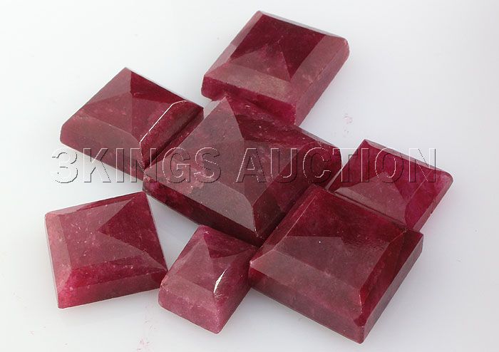 Ruby 136.64 ctw Loose Gemstone Mix Sizes Square Cut **|**|** Natural Ruby Loose Gemstone 12 to 21 MM in size Square Shape lot of 7 ; MSRP: $500