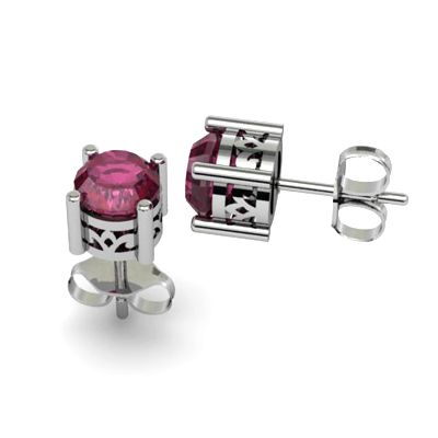 Ruby 2.10ctw Earring 14kt White Gold **|**|** Mainstone: Ruby ; Total CTW: 2.10 ; Shape: Round ; Gem Size: 6mm ; Metal / Purity: 14kt White Gold ; Gem Count 1: 2 Round Cut ; MSRP: $800