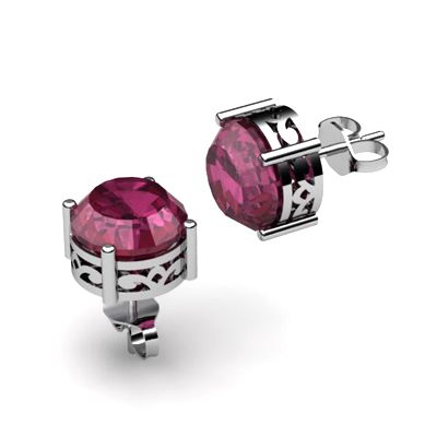 Ruby 2.25ctw Earring 14kt White Gold **|**|** Mainstone: Ruby ; Total CTW: 2.25 ; Shape: Round ; Gem Size: 8mm ; Metal / Purity: 14kt White Gold ; MSRP: $1000