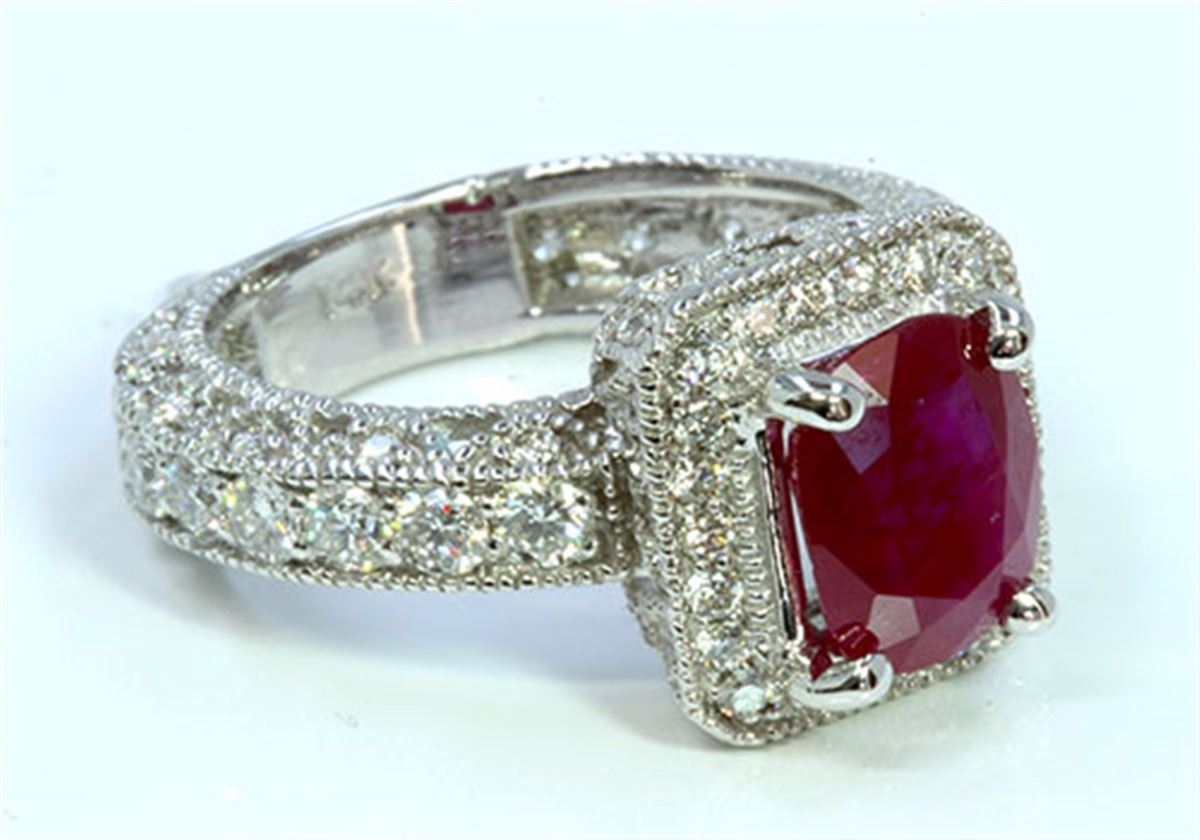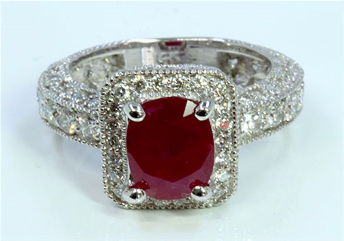 Ruby 2.74ct / Diamond 1.84ct / 14K White GoLd Ring 6.91gram