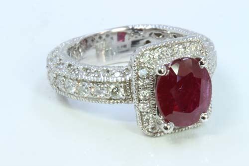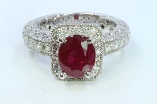 Ruby 3.05ct / Diamond 1.22ct / 14k White Gold Ring 3.05gram