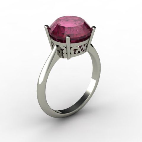 Ruby 4.50 ctw Ring14kt White Gold **|**|** Mainstone: Ruby ; CTW: 4.50 ; Shape: Round ; Gem Size: 10mm ; Metal / Purity: 14kt White Gold ; MSRP: $1000