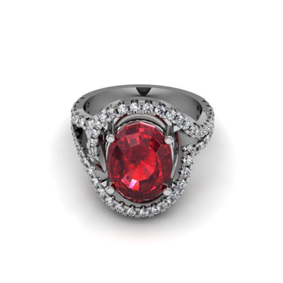 Mainstone: Ruby ; Total CTW: 4.928 ; Metal Purity: 18kt ; Metal: W/Y Gold ; Diamond Count: 62 Round Cut ; Diamond CTW 1: 0.818 ; Clarity: SI1-SI2 ; Diamond Color: G-H ; Gem Count 1: 1 Oval Cut ; Gem Size(mm): approx. 10x11mm ; Gem Clarity: AA-AAA ; Ring Size: 7 ; Weight(g): 6 ; MSRP: $3107