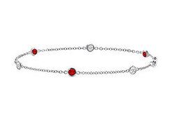 Three bezel-set vibrant red rubies and three brilliant diamonds are beautifully linked in a delicate chain. Made in 14K white gold this bracelet has a total gem weight (TGW) of 0.75 ct.