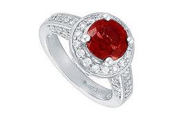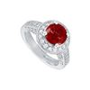 AAA quality radiant deep red round ruby is prong-set atop. Brilliant-cut round diamonds compliment the center stone on all sides in the delicate gallery work. Made in rich platinum this engagement ring has a total gem weight (TGW) of 4.00 ct.