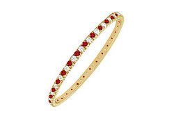 A fashionable circle eternity bangle surrounded with alternate sparkling brilliant-cut round diamonds & rubies are beautifully 4-prong-set. Made in 14K yellow gold & has a total gem weight (TGW) of 3.00 carat. This gorgeous eternity bangle is made in USA and we can make this bangle exactly as per your wrist. Call us for free bangle sizer.
