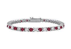Get caught in the rapture of rubies and diamonds. Radiant round rubies alternate with brilliant-cut diamonds in a 14K white gold prong-setting. With gems consistent all around it symbolizes your eternal love. This tennis bracelet has a total gem weight (TGW) of 3.00 ct.